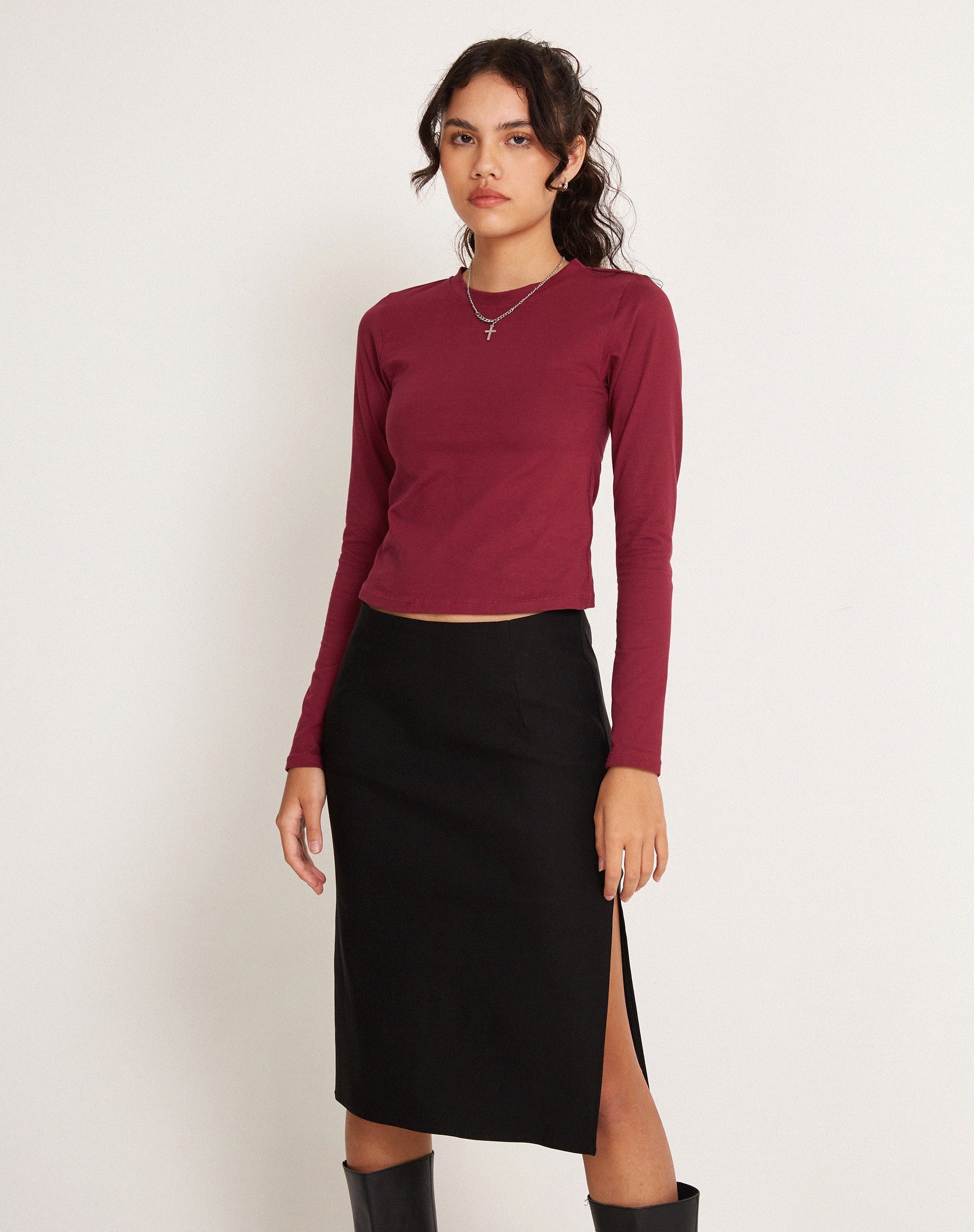 Rabia Long Sleeve Crop Top in Peppercorn