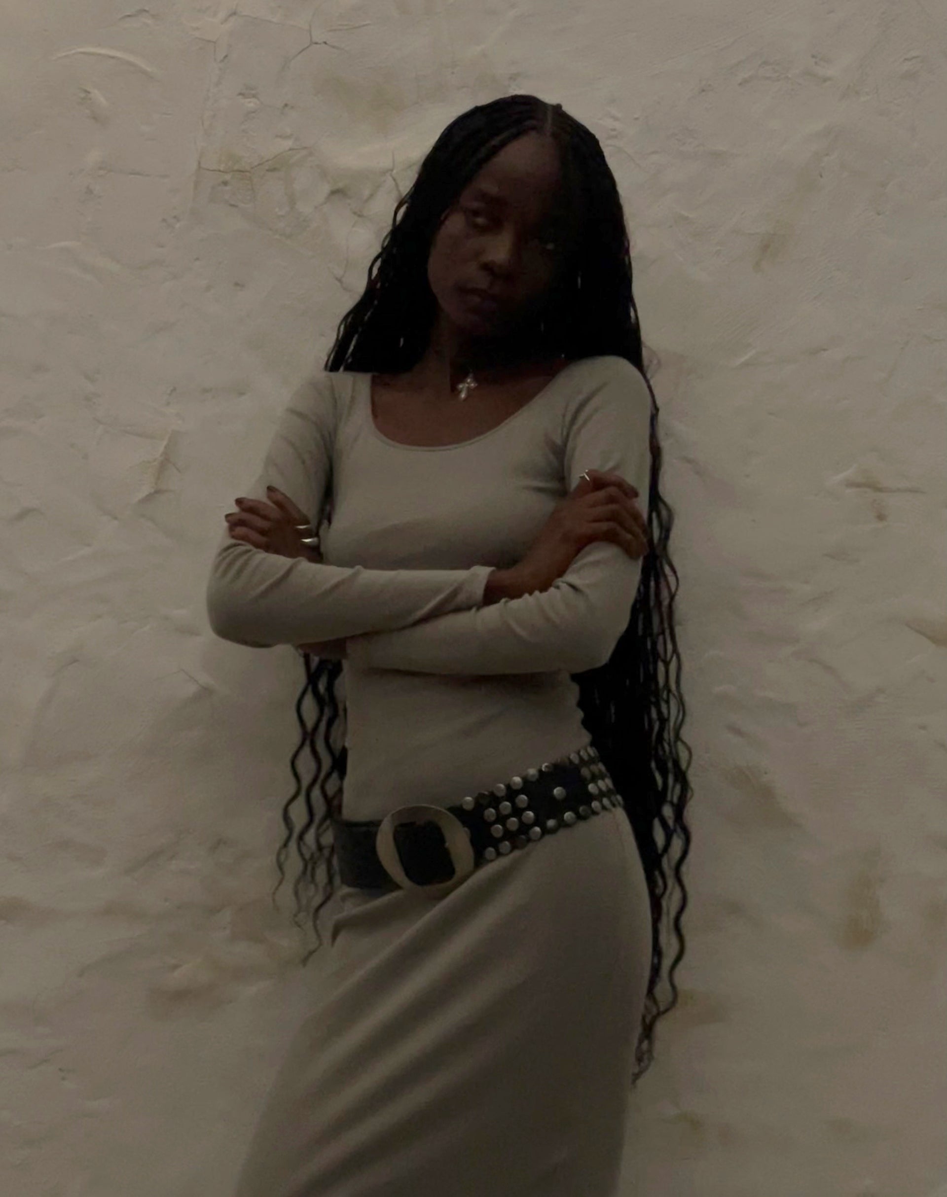 Binlo Extra Long Sleeve Top in London Fog