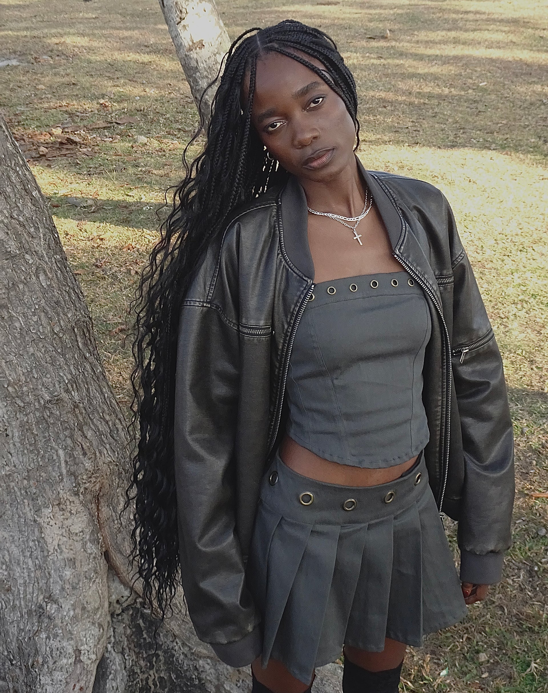 Caluna Eyelet Mini Skirt in Charcoal Grey