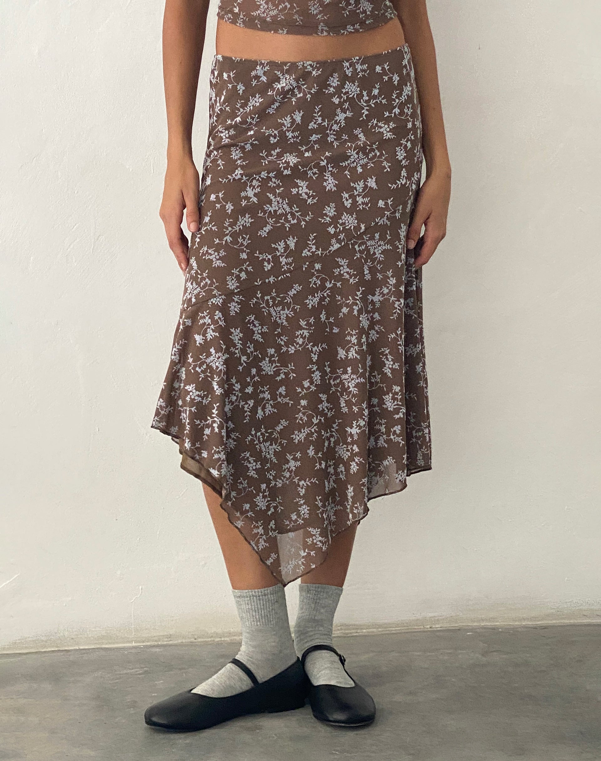 Cinta Low Rise Midi Skirt in Botanist Flock Dark Taupe