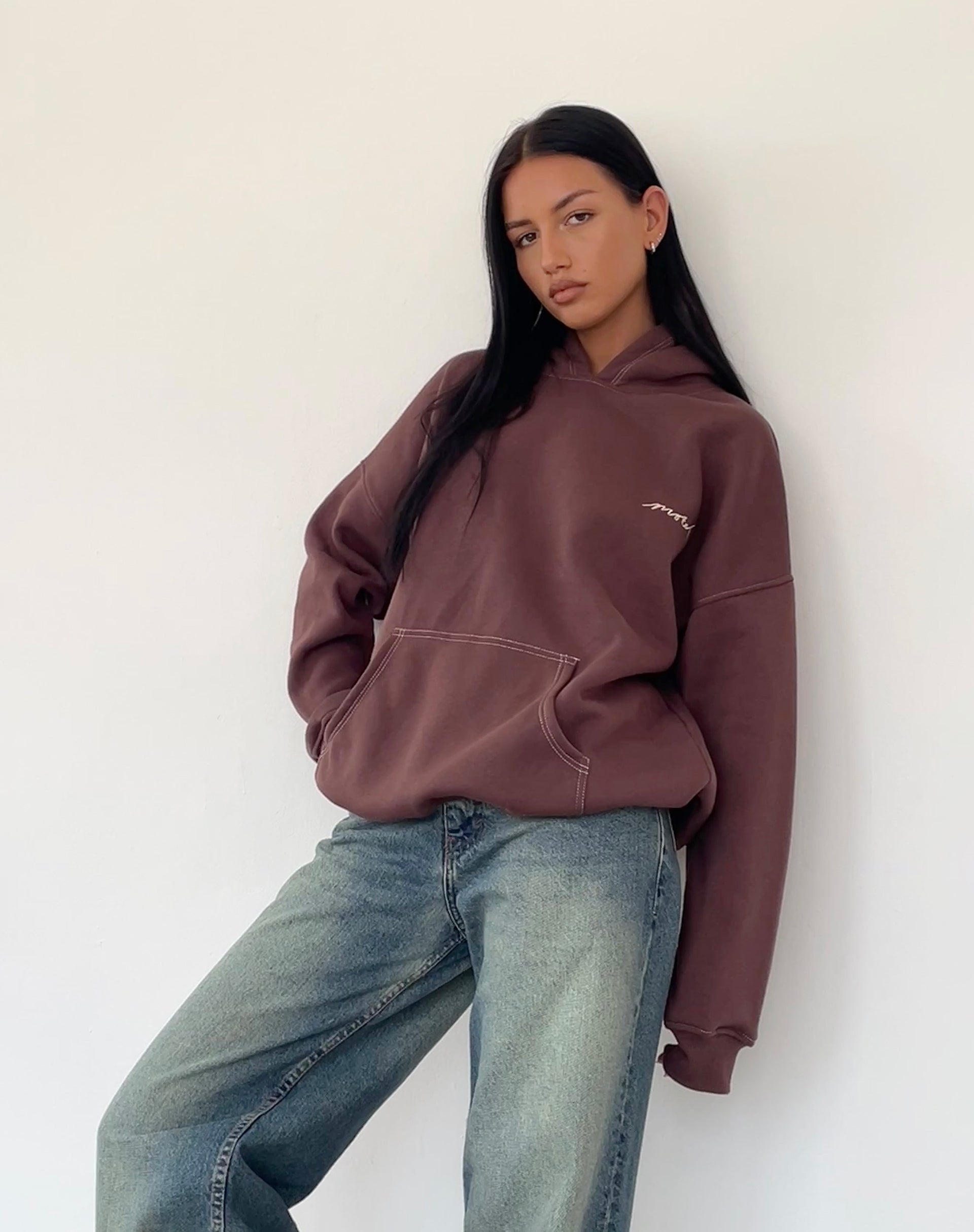 Oversize Hoodie in Deep Mahogany with Motel Scribble Embroidery