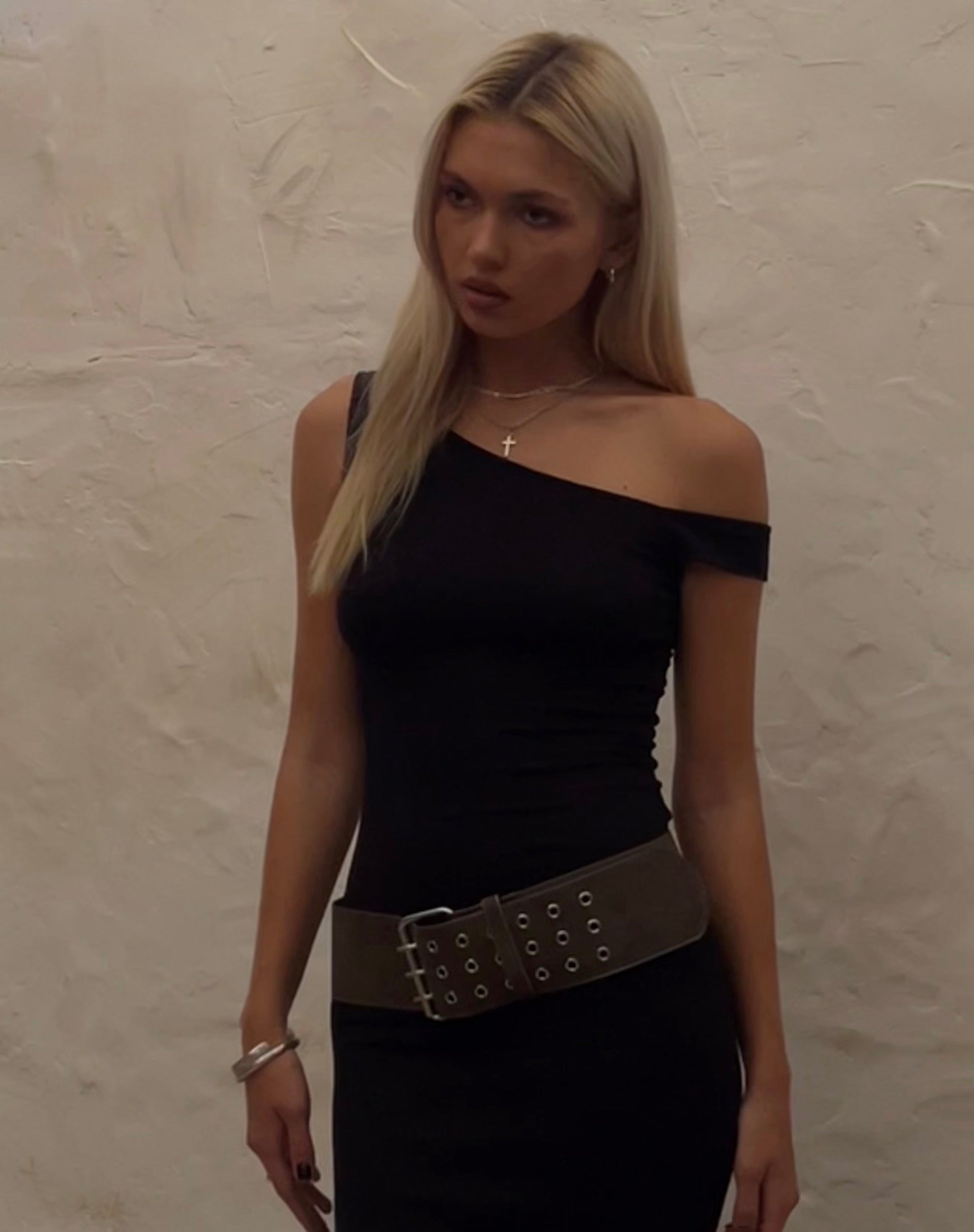 Andi Long Sleeve Bardot Top in Slinky Black