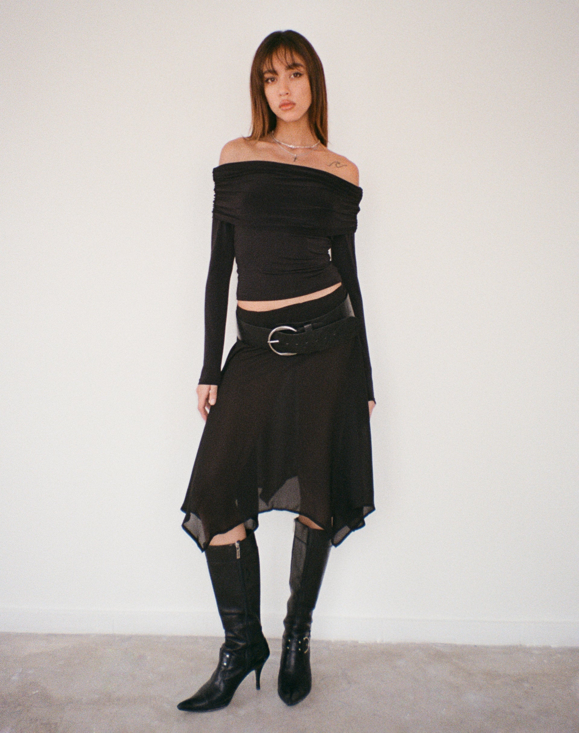 Albertha Midi Skirt in Chiffon Black