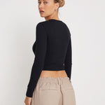 Basic long sleeve top in black with cropped length and crew neckline. Complete the look with our Stone Hansa Trousers.
