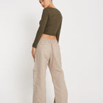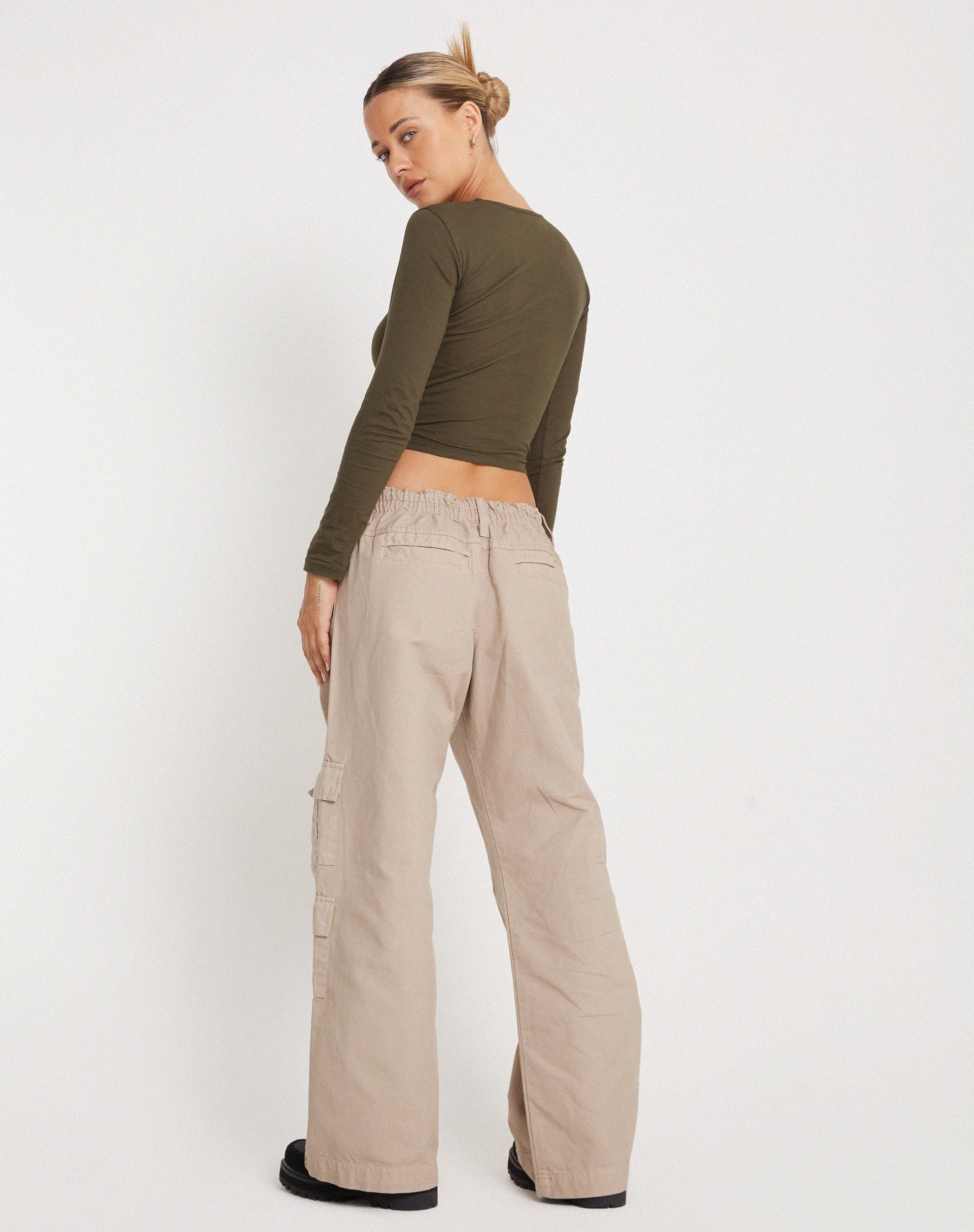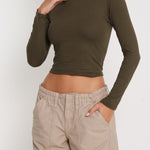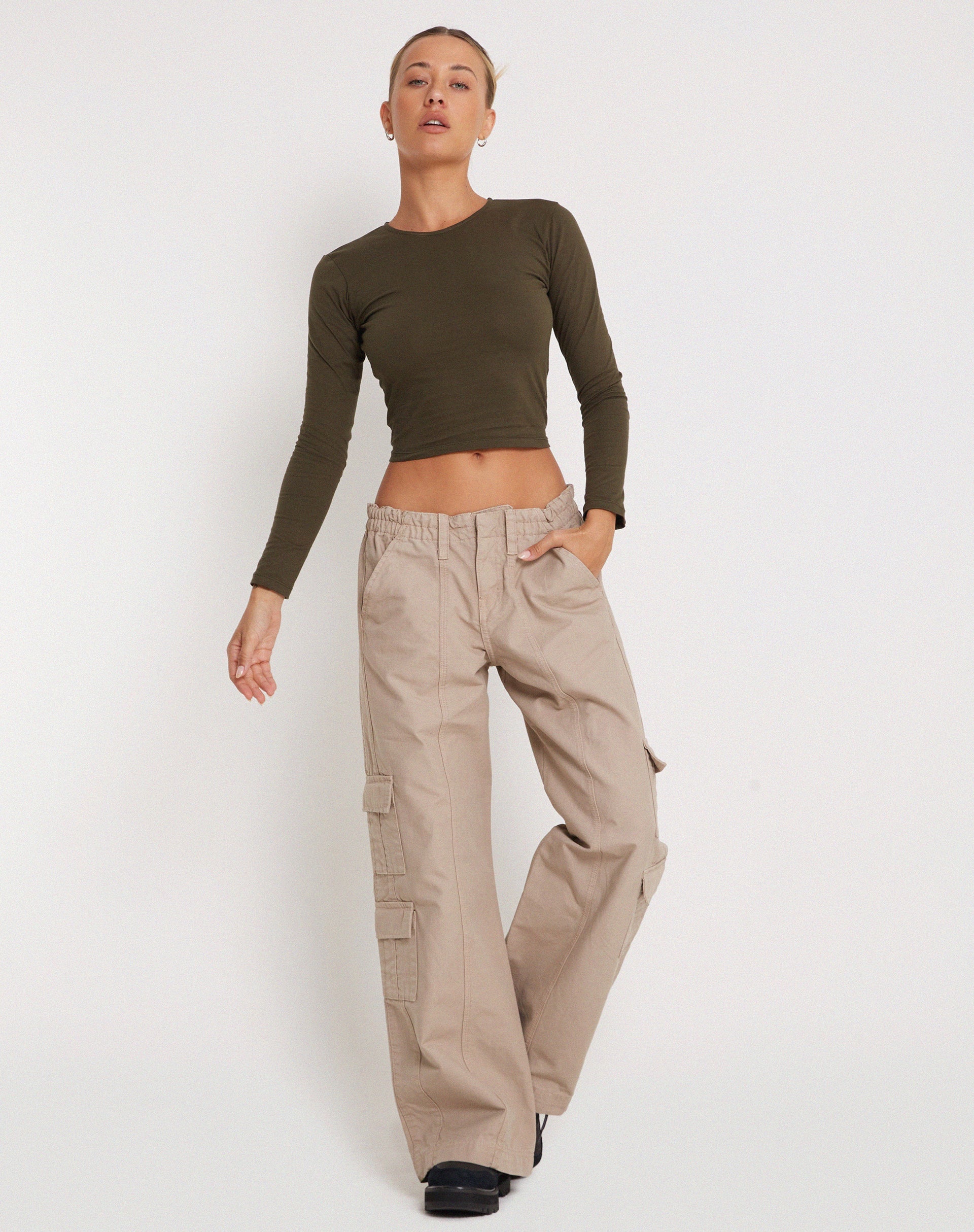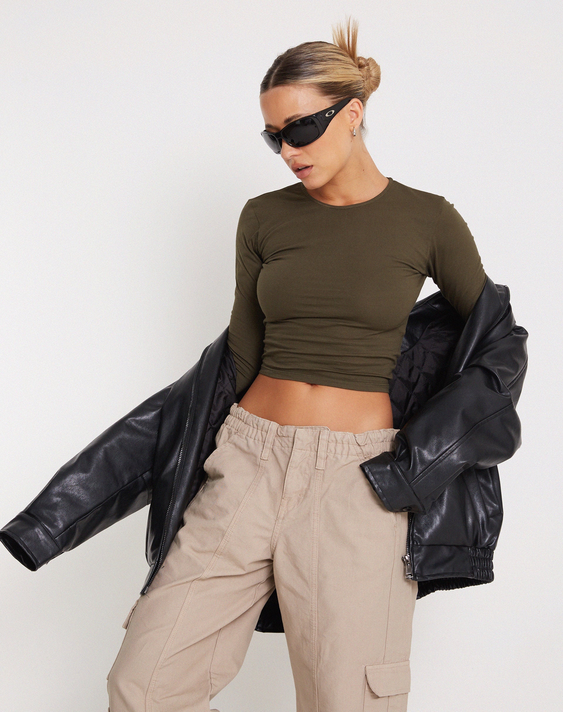 Long sleeve top in olive, featuring crew neck and cropped fit. Complete the look with our Stone Hansa Trousers.