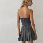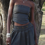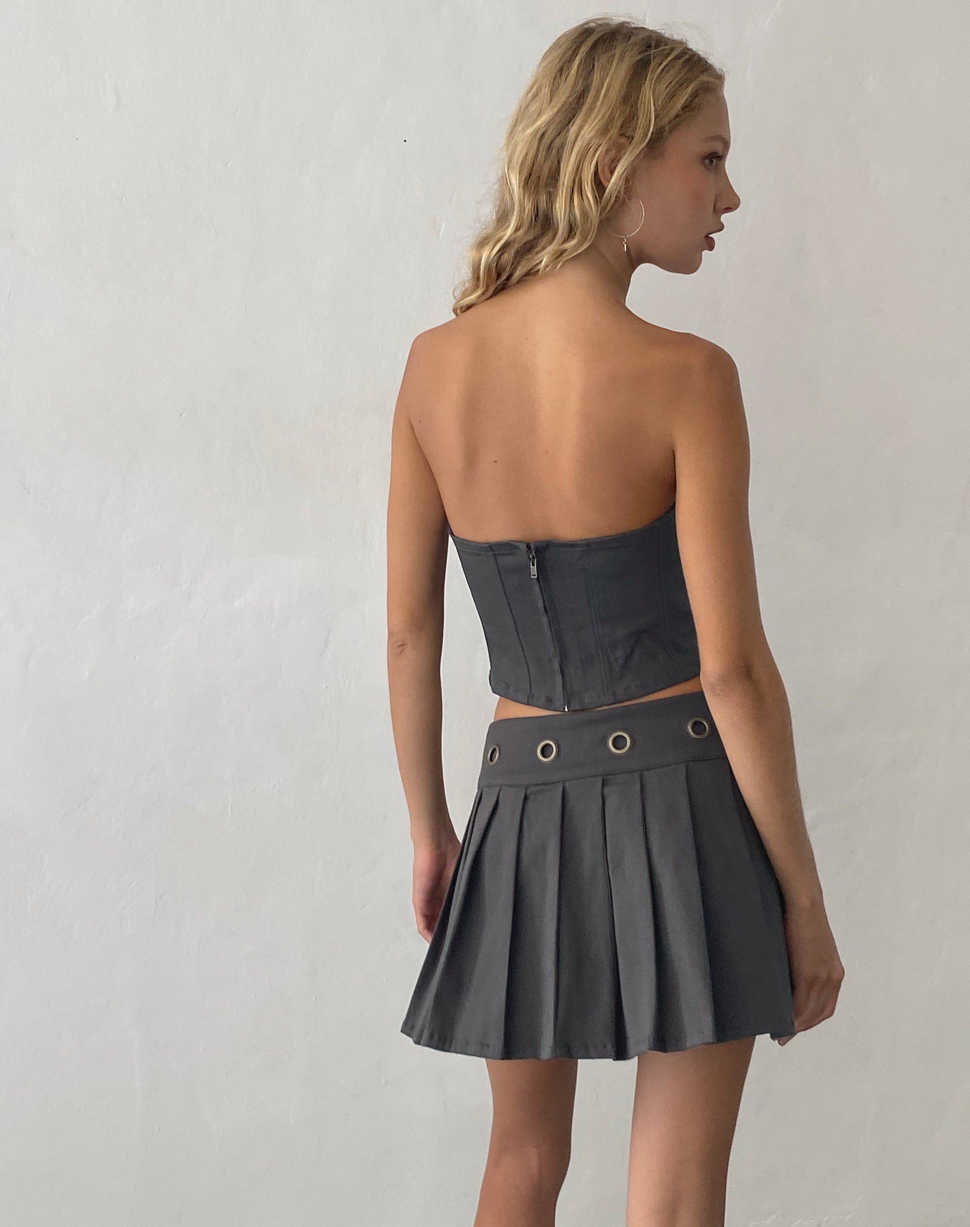 Caluna Eyelet Mini Skirt in Charcoal Grey