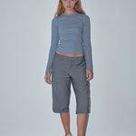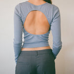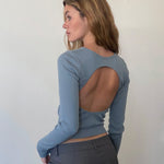 Gelbon Open Back Long Sleeve Top in Rib Powder Blue