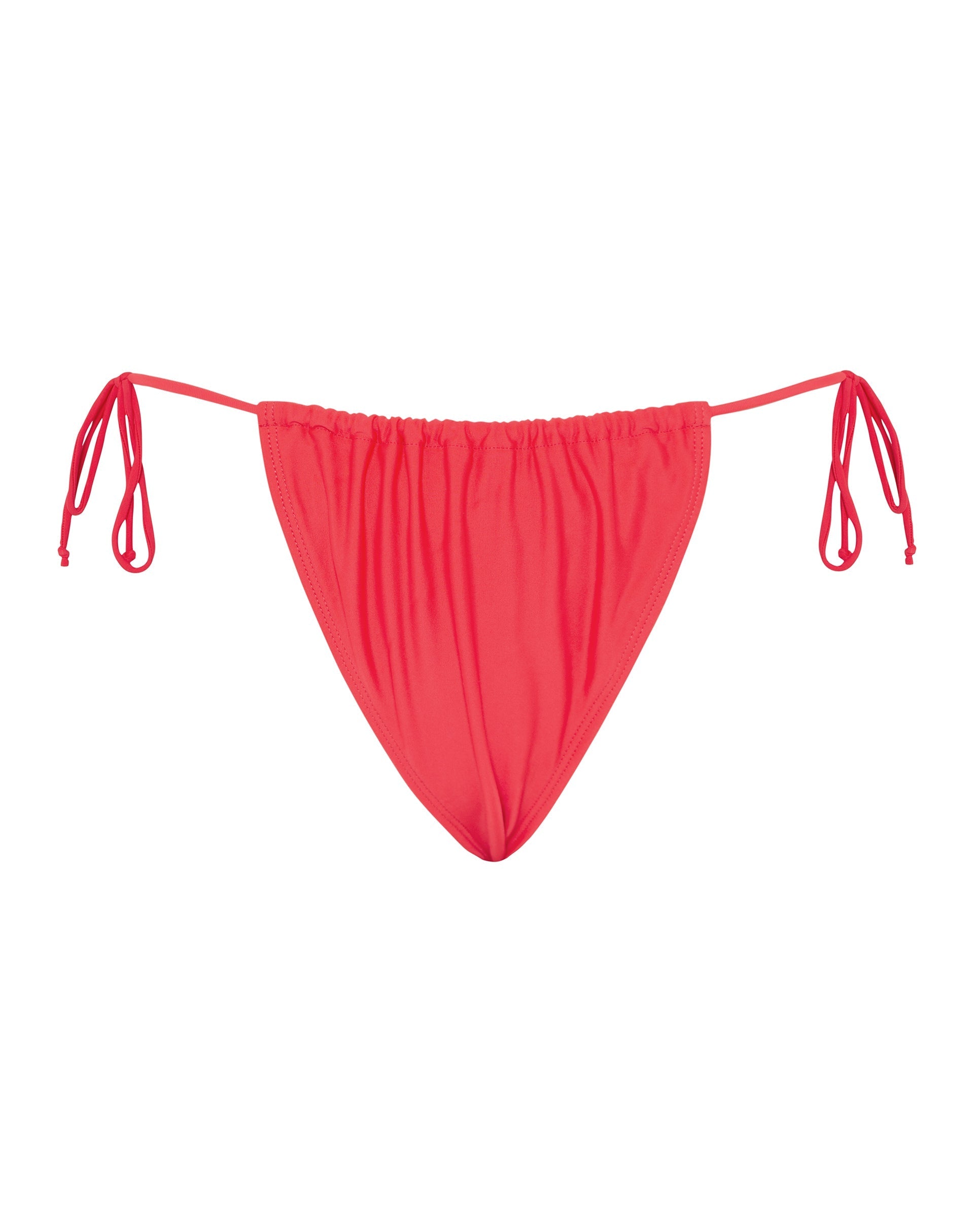 Dive into summer in our Leyna bikini bottom. In a scarlet red colour, they feature a high rise silhouette and adjustable tie straps with ruched detailing to secure the perfect fit.