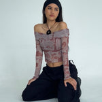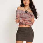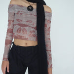 Nadhira Long Sleeve Mesh Bardot Top in Botanical Bleed Warm Grey