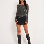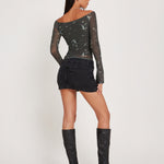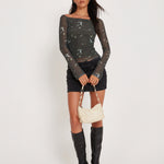 Your new favourite top is here! The Neira Top features long sleeves, a bardot neckline and comes in a mesh fabric with a khaki floral print. Pair with our Trula skirt for the perfect co ord.