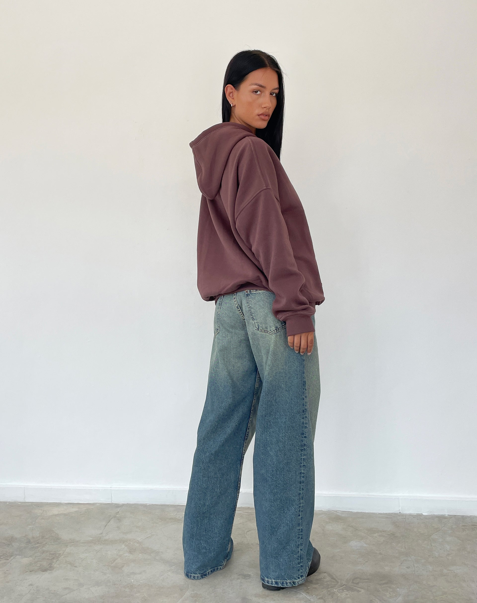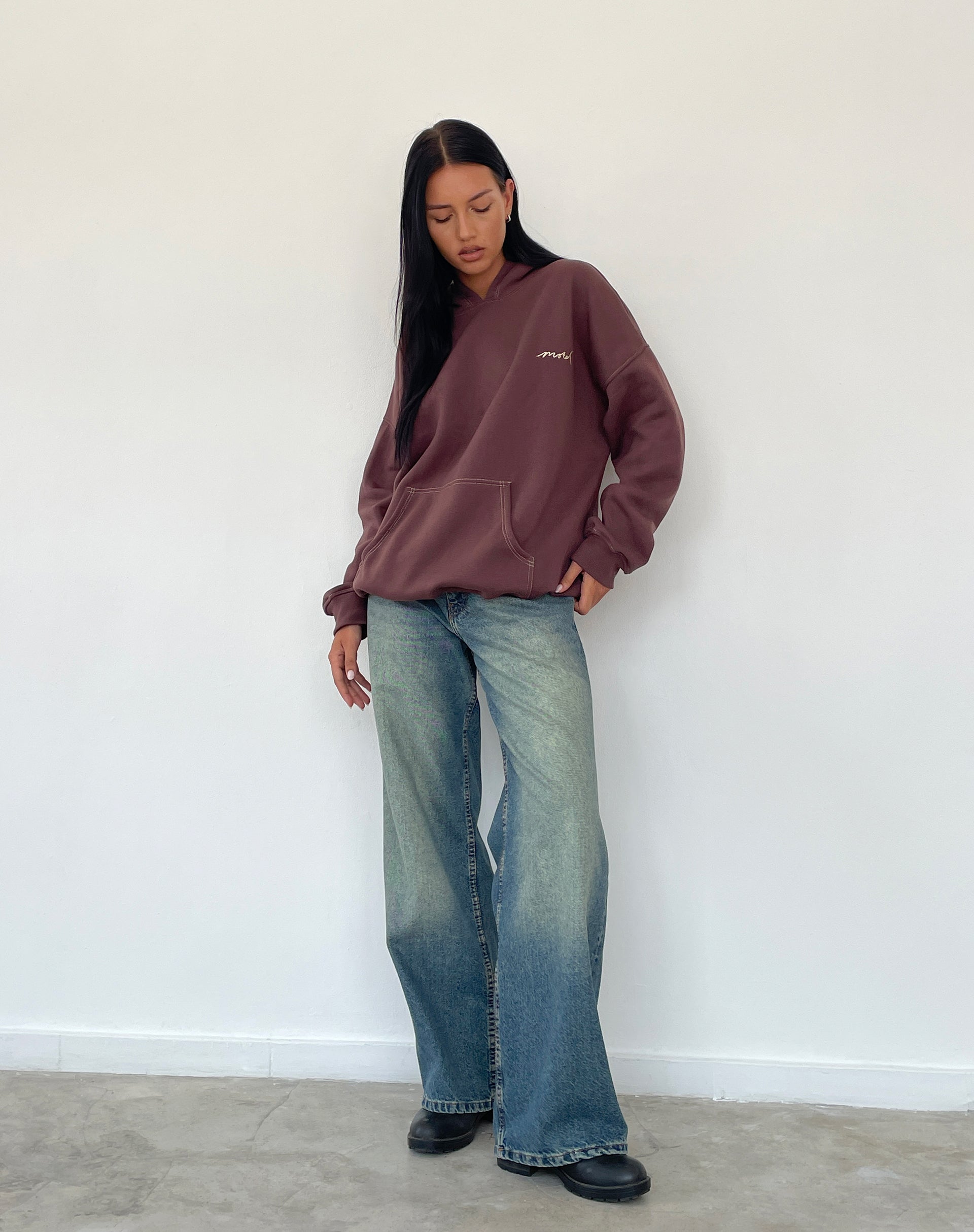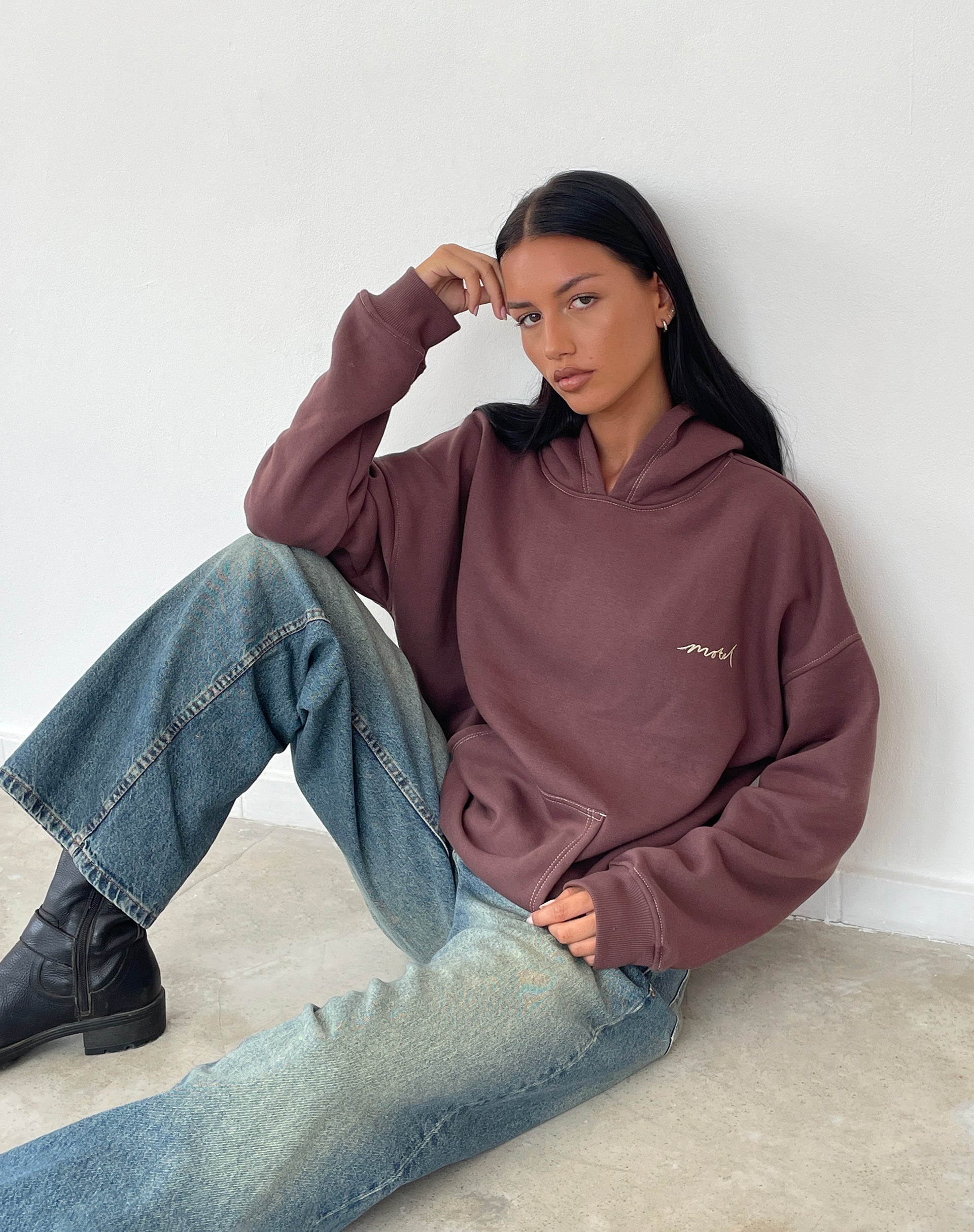 Oversize Hoodie in Deep Mahogany with Motel Scribble Embroidery