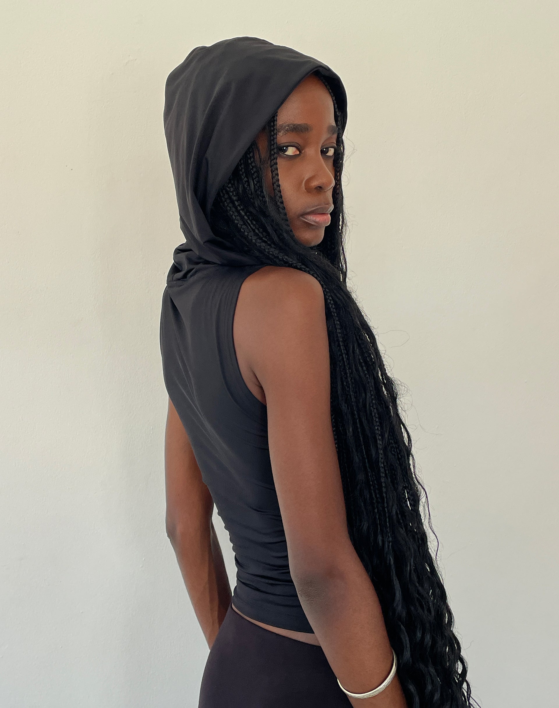 Tapia Hooded Tank Top in Black Slinky