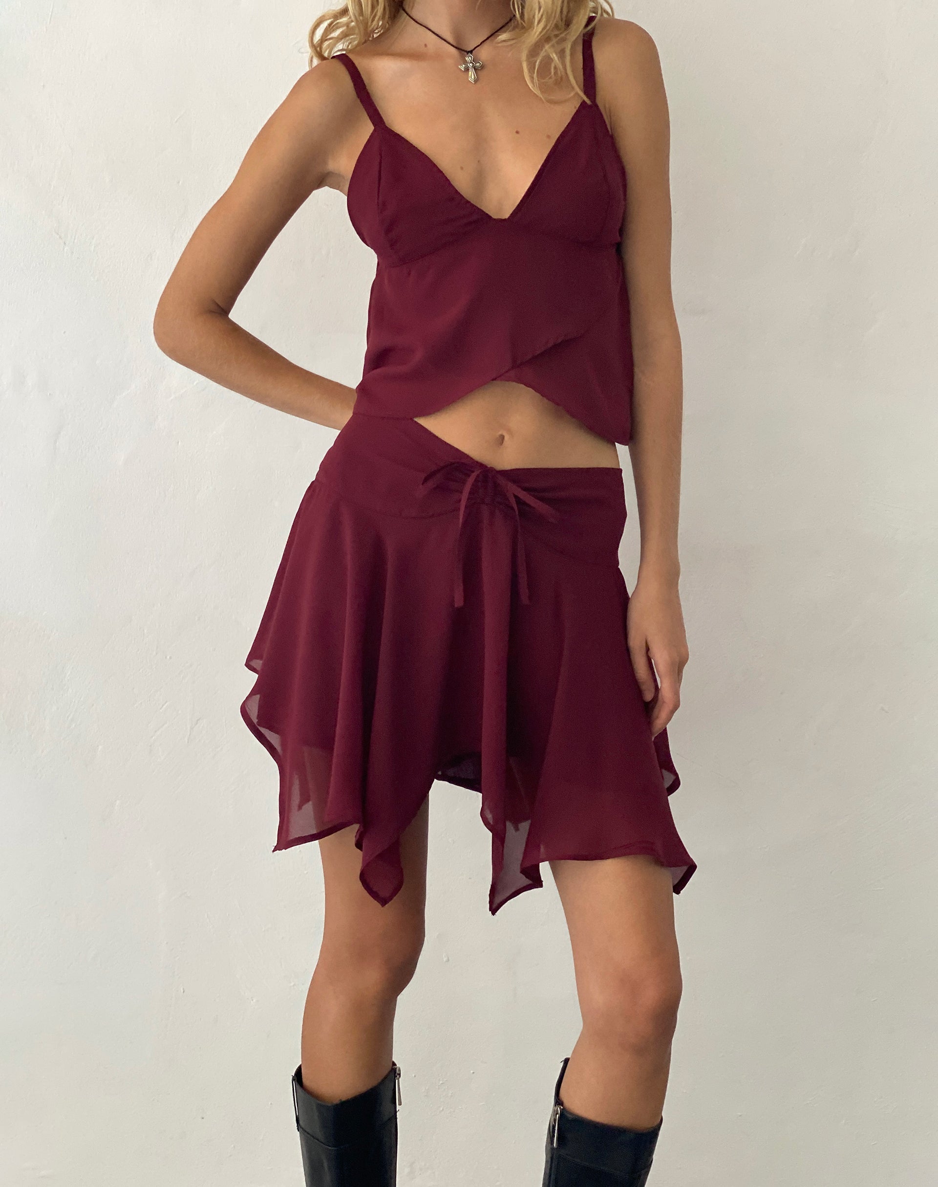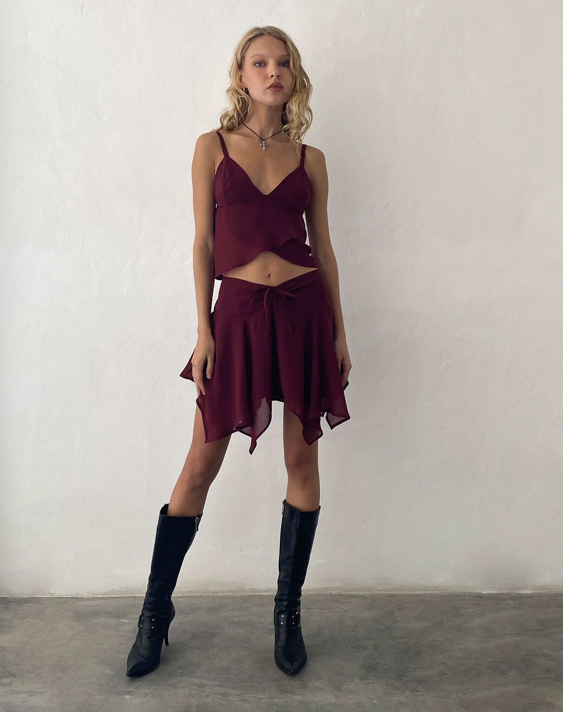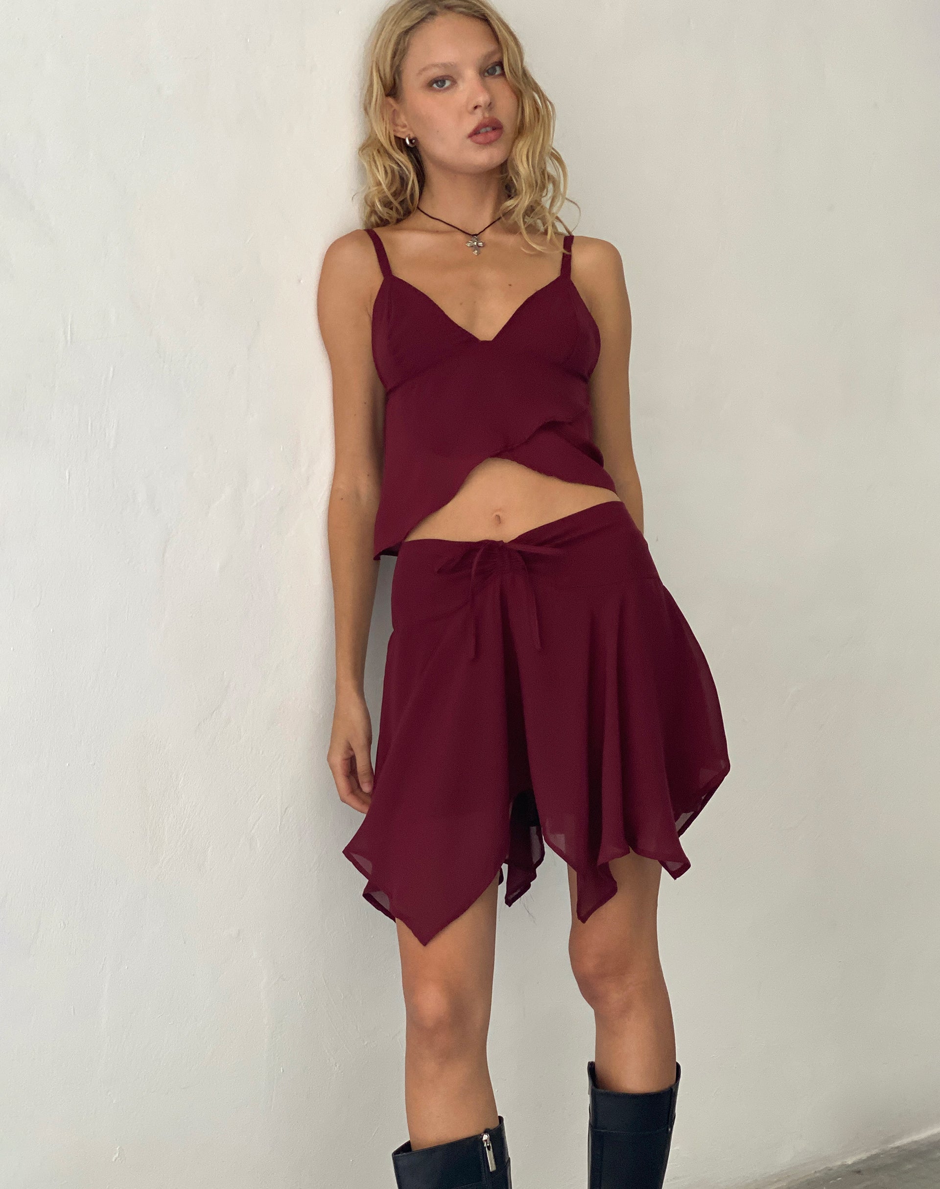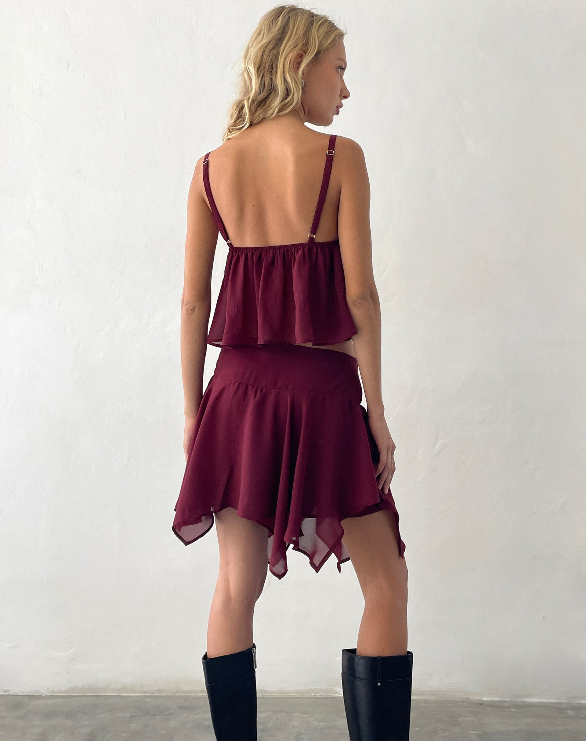 Veny Mini Skirt in Chiffon Oxblood