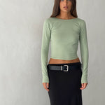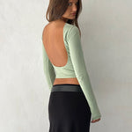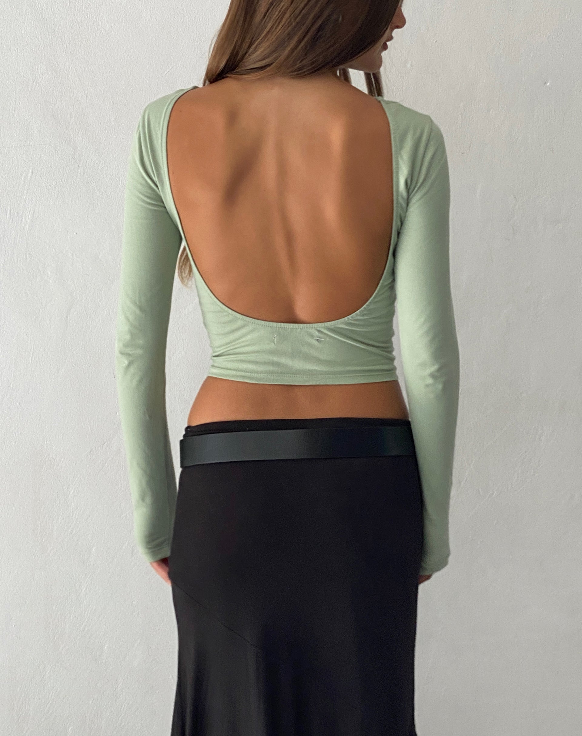 Xiabon Backless Long Sleeve Top in Desert Sage